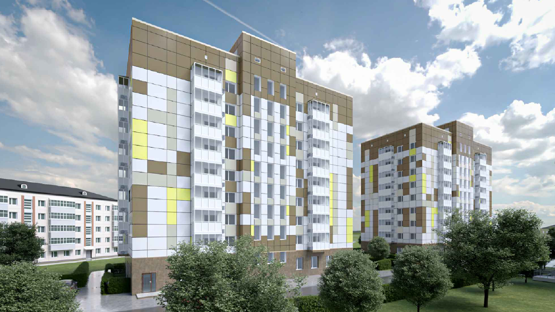 Конструкция 9-ти этажного жилого комплекса выполнена из железобетонного каркаса, заполнение - силикатный кирпич. Проектом предусмотрены одно и двух комнатнатные квартиры с удобными планировками в чистовой отделке. На первом этаже жилого комплекса расположены встроенные (торгово-офисные) помещения.
